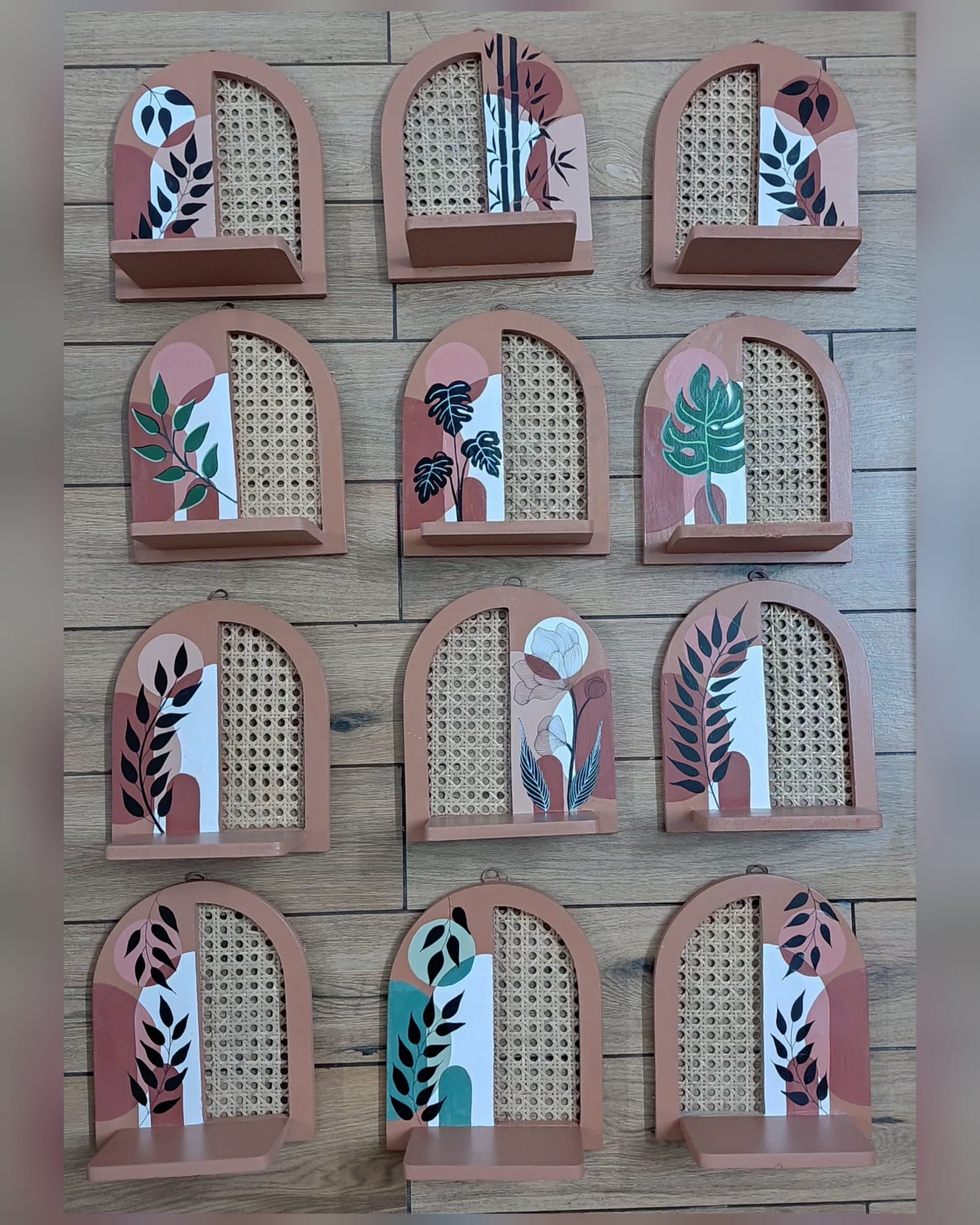 This boho-inspired rattan wall shelf features intricate handwoven details and a lightweight, airy structure. Designed to blend functionality with aesthetics, it’s ideal for creating an organic, relaxed interior vibe while showcasing your favorite keepsakes.